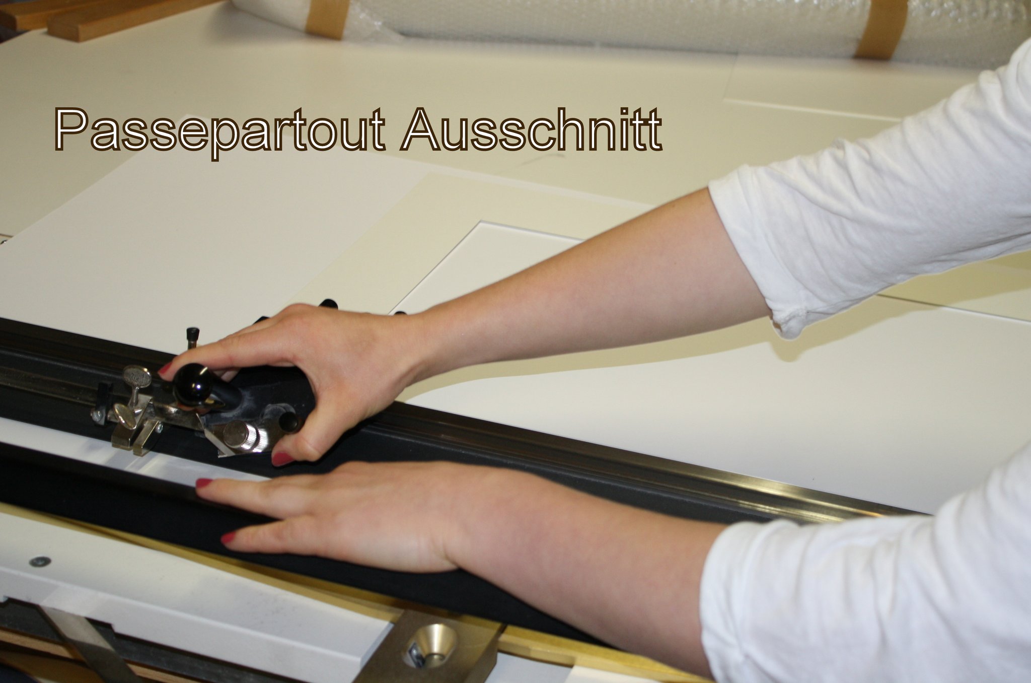 Einrahmung Kirschbaum mit Weissgoldeinlage und MDF Passepartout